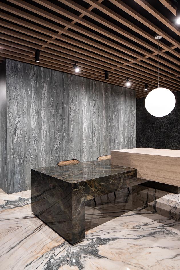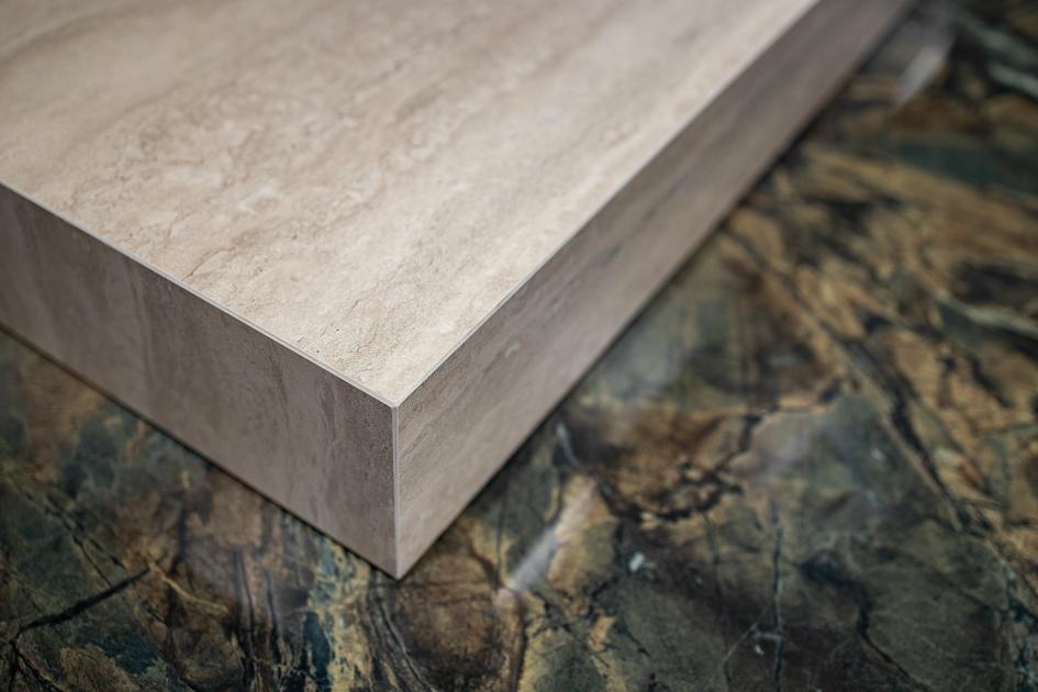 W edycji specjalnej Puro Marazzi Antibacterial The Top przewidziano płyty z gresu w formacie 162 x 324 cm o grubości 12 mm w sześciu wariantach o efekcie cementu, marmuru i kamienia: Concrete Look White, Marble Look Elegant Black, Golden White i Statuario, a także Stone Look Ceppo di Gré i Travertino Classico. To ostatnie wykończenie jest prezentowane po raz pierwszy w ramach kolekcji The Top, w której gresowi porcelanowemu przywrócono kolor i powierzchnię półkompaktową, typowe dla skały powszechnie wykorzystywanej już od czasów starożytnego Rzymu.