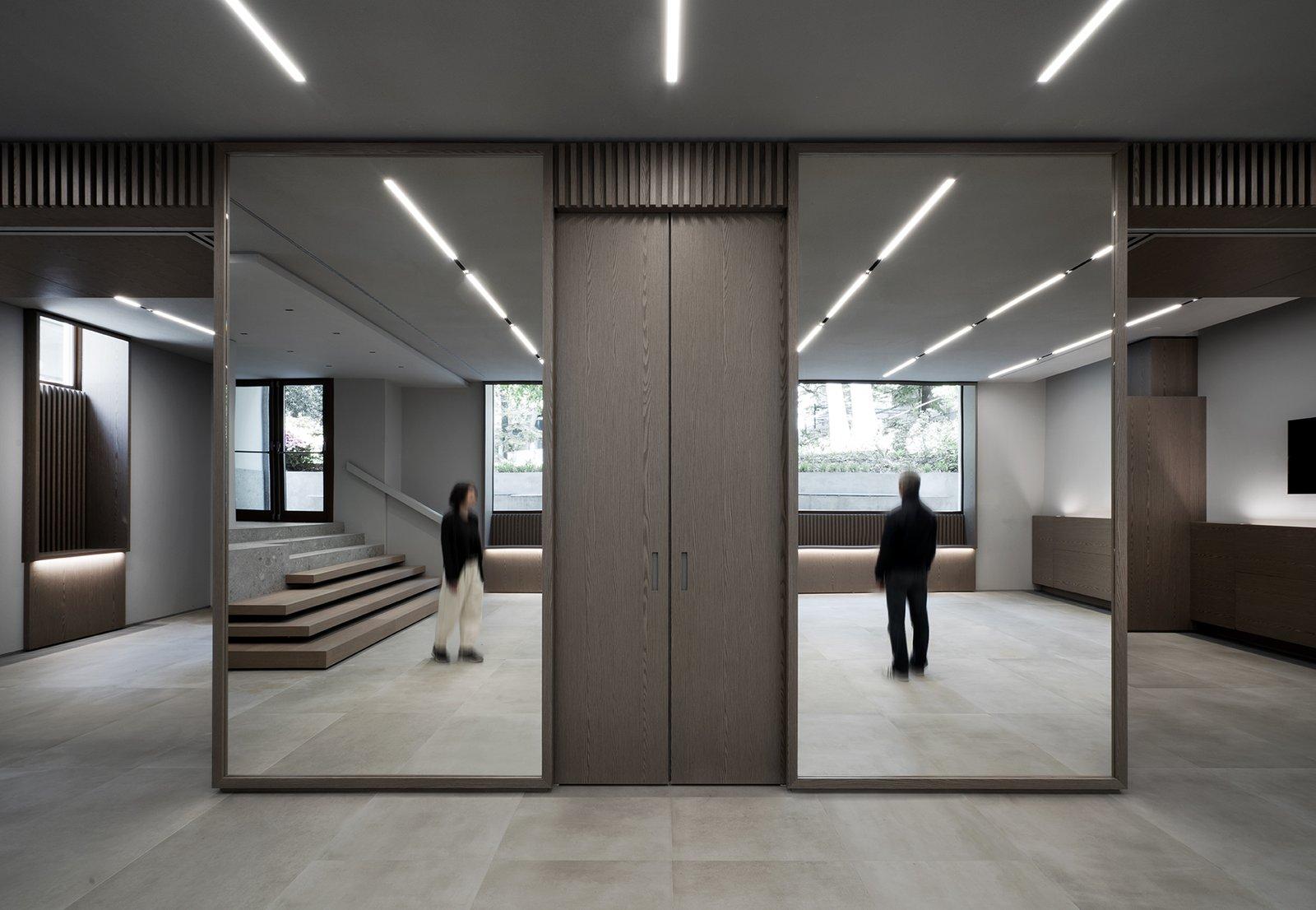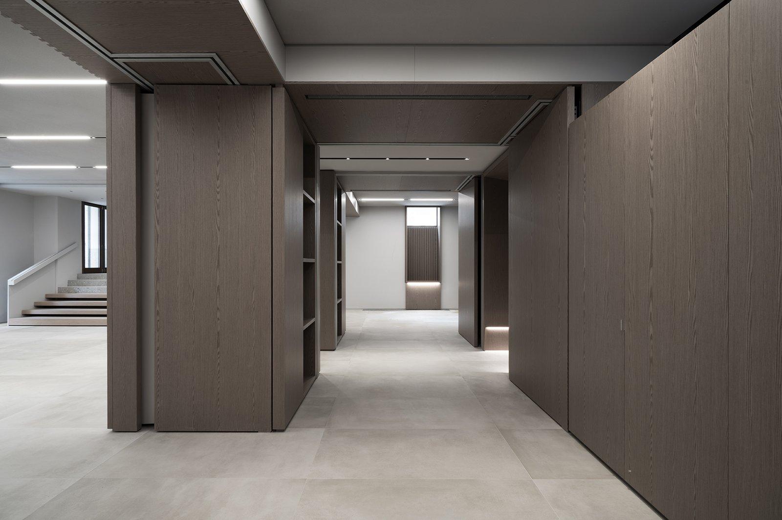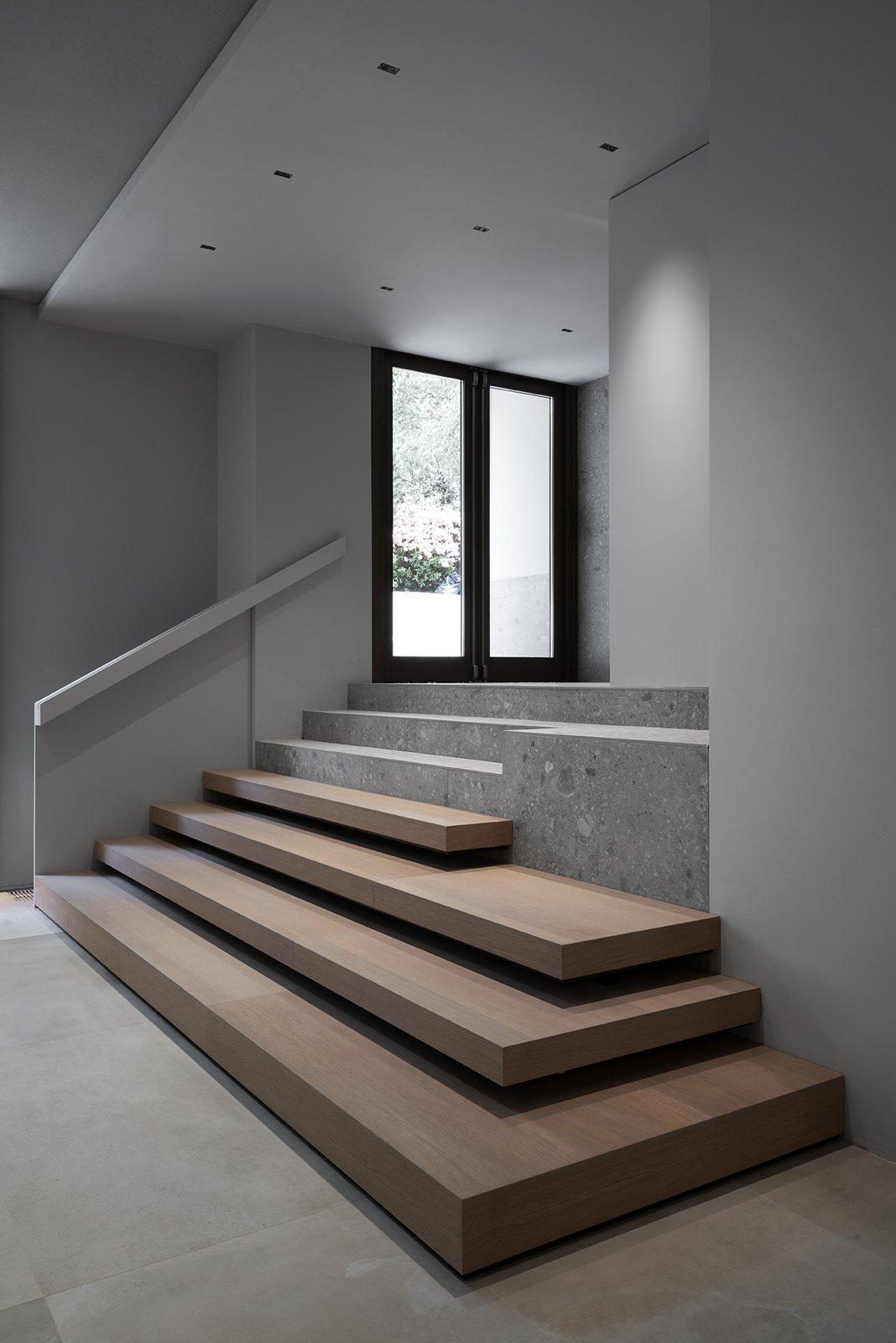 W celu podkreślenia ciągłości z naturalnymi kamieniami występującymi poza budynkami wybrano gres porcelanowy marki Marazzi, a konkretnie kolekcję Mystone Ceppo di Gré, z naturalnym wykończeniem i w dużym formacie (75×150 cm). Płyty te położono na wejściu do przestrzeni wielofunkcyjnej, w części klatki schodowej i we wszystkich łazienkach, również na ścianach. Naturalną serię Powder Mud (75×150 cm) zastosowano natomiast na podłodze w przestrzeni wielofunkcyjnej i w dépendance. Zastosowany w tej kolekcji efekt cementu ma bowiem nawiązywać do innych, istniejących już tam, podłóg: dezaktywowanego betonu z naturalnymi kamieniami i lastryka. „Wybrałam gres Marazzi ze względu na jego jakość estetyczną, która ma niezwykle istotne znaczenie w tak prestiżowym miejscu. Ale ważna jest też jego praktyczność, która przekłada się na łatwiejsze codzienne utrzymanie go i higienę, niezbędne zwłaszcza w miejscu przeznaczonym na organizację różnych wydarzeń. Równie istotna jest też trwałość tego materiału w miarę upływu czasu”.