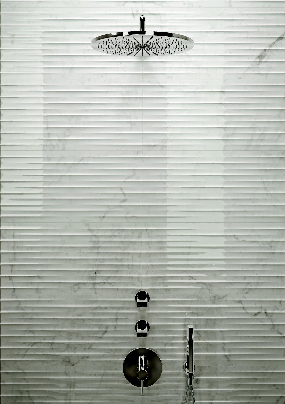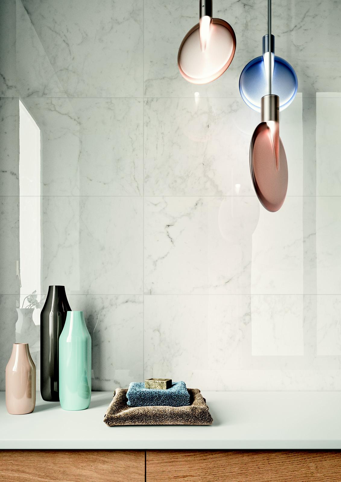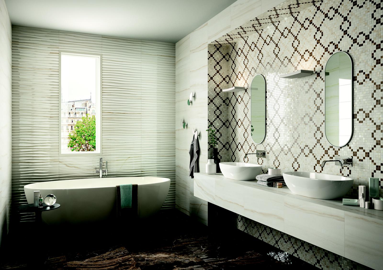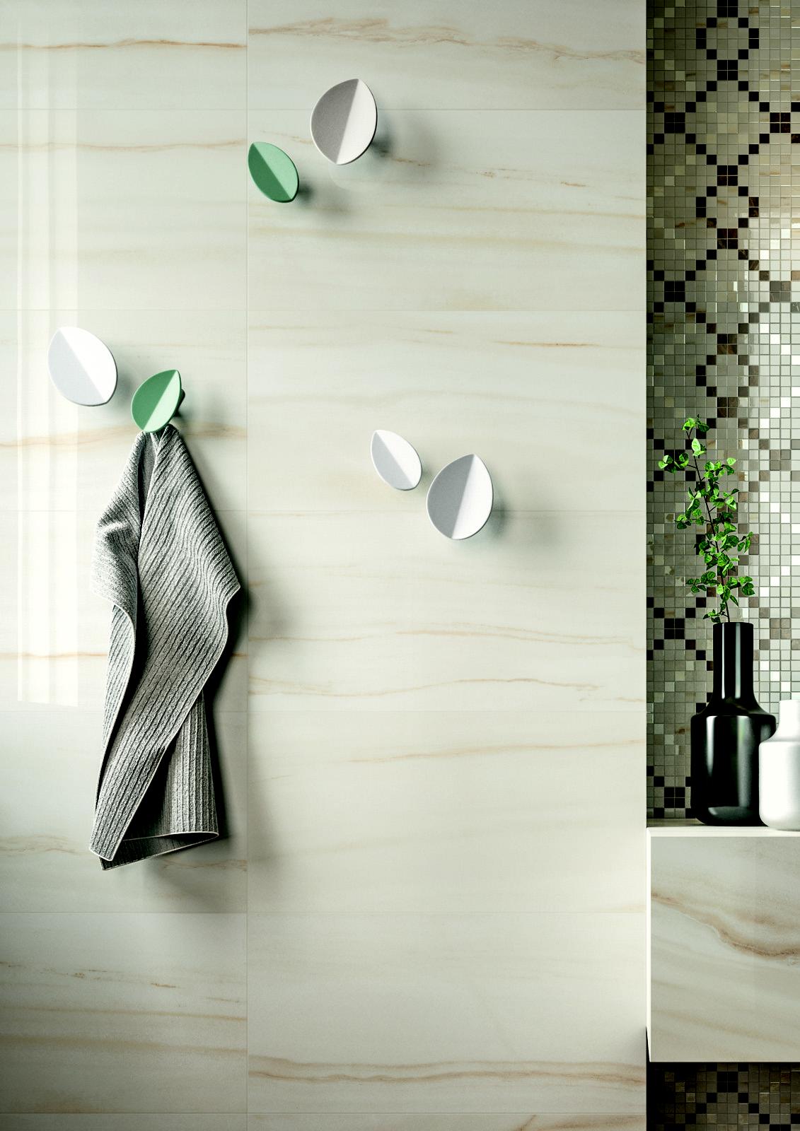 Bohaterem 2 łazienek, jednej prywatnej z dostępem z głównej sypialni, a drugiej przeznaczonej dla gości i pozostałych 2 sypialni, jest również gres o efekcie kamienia: w tym pierwszym przypadku wybrano kolekcję Pietra di Vals, w drugim natomiast Gris Fleury, obie z gamy Mystone. Te dwie kolekcje, ułożone poprzez naprzemienne stosowanie w obu pomieszczeniach formatów 30 x 60 i 60 x 60 w tym samym kolorze (szarym), nadają projektowi jednolity styl: loft ten staje się dzięki temu spójnym i minimalistycznym pomieszczeniem, a dwie łazienki zyskują elegancki i płynny charakter.
