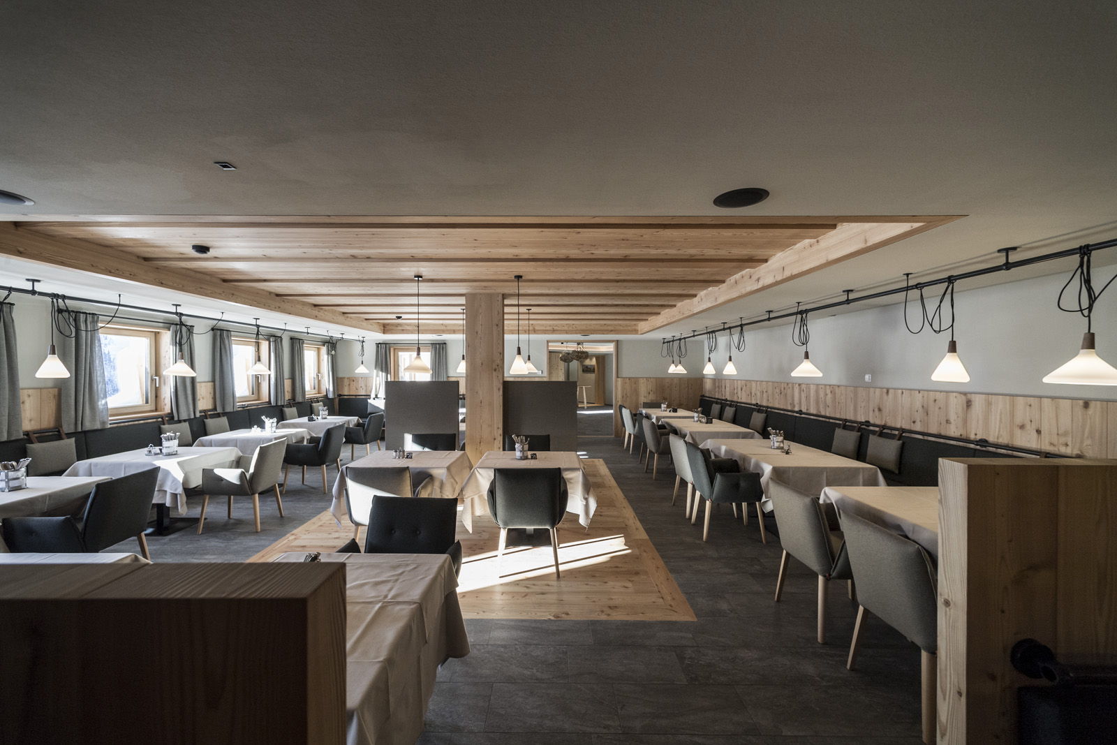 Nasza siedziba w Bolzano znajduje się w regionie pełnym niezwykle wysoce wykwalifikowanych rzemieślników i firm. Szacunku do środowiska uczy się tam już od najmłodszych lat i nie trudno dostrzec go w wielu obiektach na tym terenie. Ponieważ mamy wiele placów budowy w branży turystyczno-hotelarskiej, gdzie terminy są mocno napięte, potrzebujemy dostawców, którzy często wymagani się „na ostatnią chwilę”, elastycznych, z dobrze zaopatrzonym magazynem i najlepiej szczycących się obecnością międzynarodową. Poza tym firmy muszą być na bieżąco i posiadać maszyny oraz technologie niezbędne, by móc wykonać określone elementy wykończeniowe. Na przykład w Apfelhotel Torgglerhof przewidziane były drewniane meble z krzywiznami, które wymagały specjalnych maszyn stolarskich. Czasami wystarczy kreatywność: w projekcie Lake House Völs odtworzyliśmy unikalny tynk dzięki tylko jednemu wałkowi malarskiemu i koronkom, które pozwoliły na stworzenie danego motywu.
