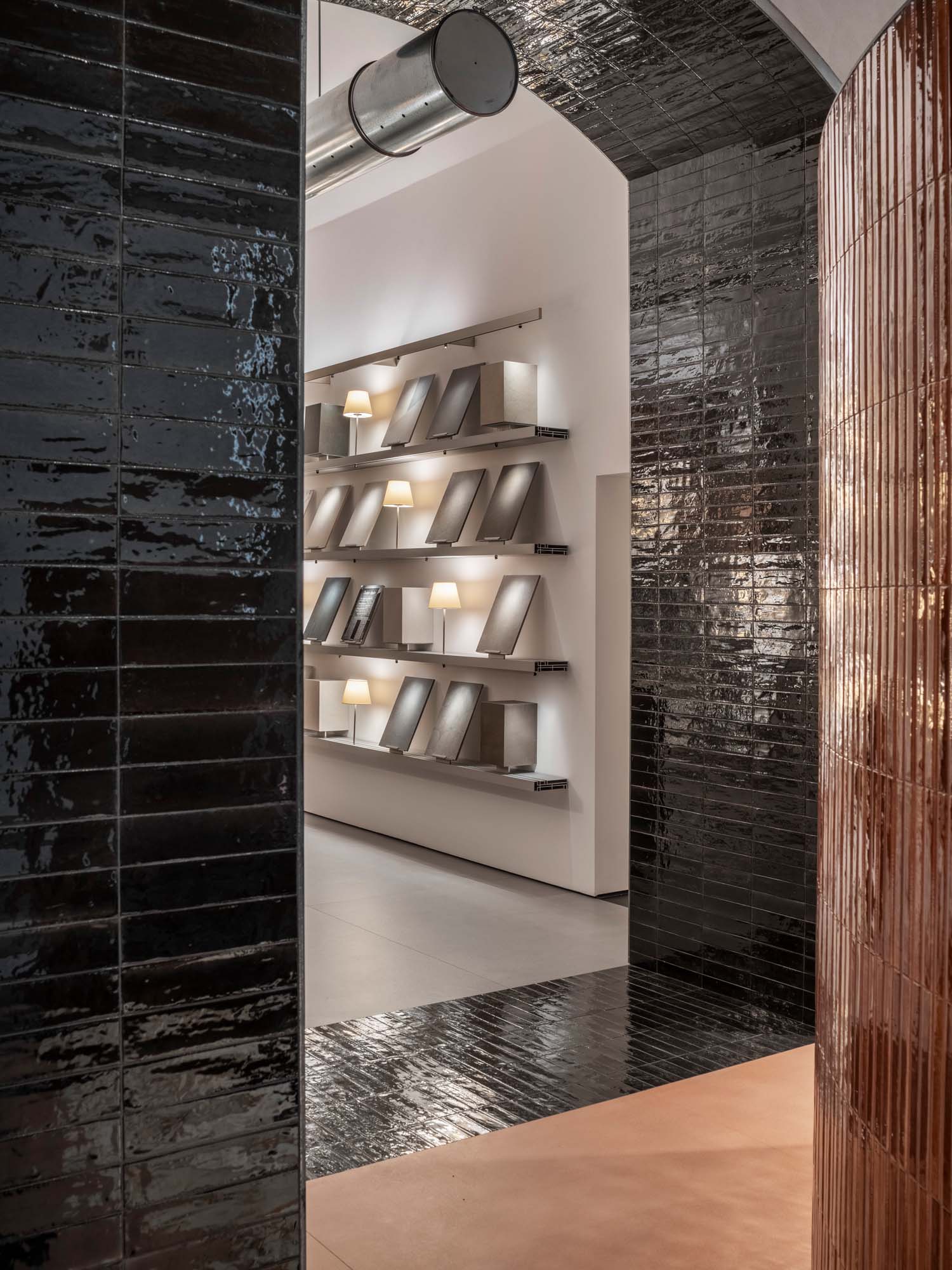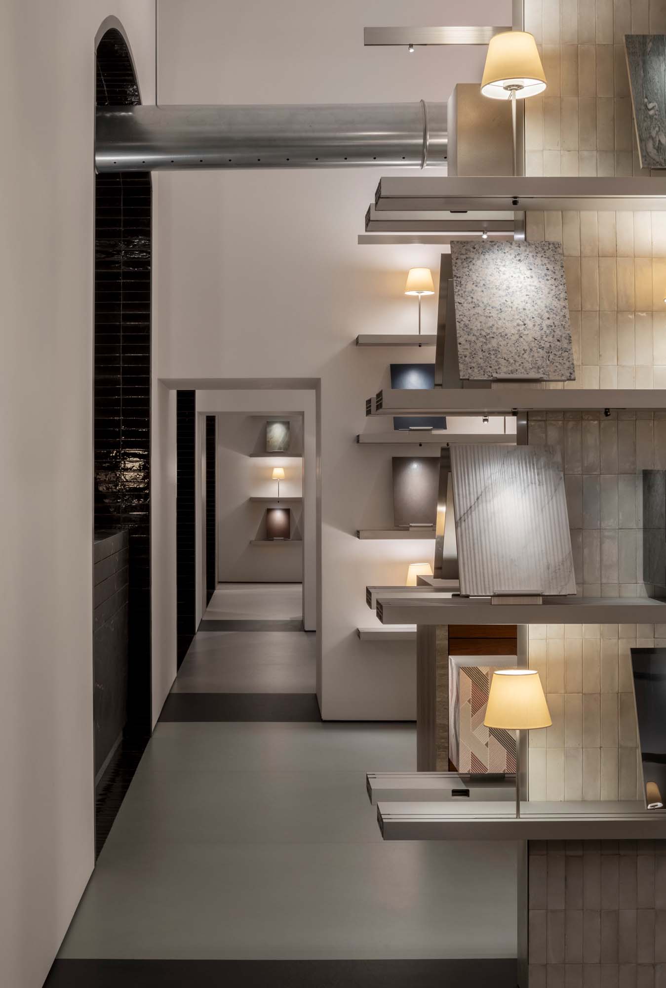 Wyjątkowa lokalizacja, 400 metrów kwadratowych rozmieszczonych na dwóch poziomach, wita odwiedzających w zaskakującej przestrzeni, w której wszechstronność materiałów ceramicznych jest prawdziwą bohaterką, w doskonałej równowadze między innowacją a designem. Duże witryny przy via Vittorio Emanuele Orlando oferują sugestywny podgląd organizacji przestrzeni, gdzie gry perspektyw i materiałów prowadzą odwiedzających w doświadczenie ciągłego odkrywania wewnątrz showroomu.