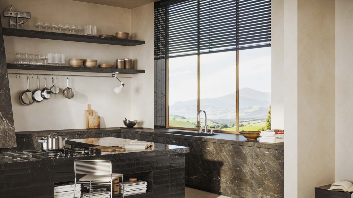 Mówiąc natomiast o powierzchniach, najbardziej interesuje mnie ich jakość sensoryczna. Osobiście fascynują mnie ogromne formaty i niezwykle cienkie grubości, które włoska technologia potrafiła wyprodukować i które umożliwiają najróżniejsze zastosowania: od najbardziej niezwykłych elewacji budynków, przez umywalki do łazienek i kuchni, aż po podłogi i ściany wewnętrzne i zewnętrzne. Interesują mnie bardziej miękkie wykończenia, trójwymiarowe dekoracje oraz wyrafinowane kolory. Połączenie tych cech pozwala mi tworzyć realizacje najbardziej zgodne z moją naturą.
