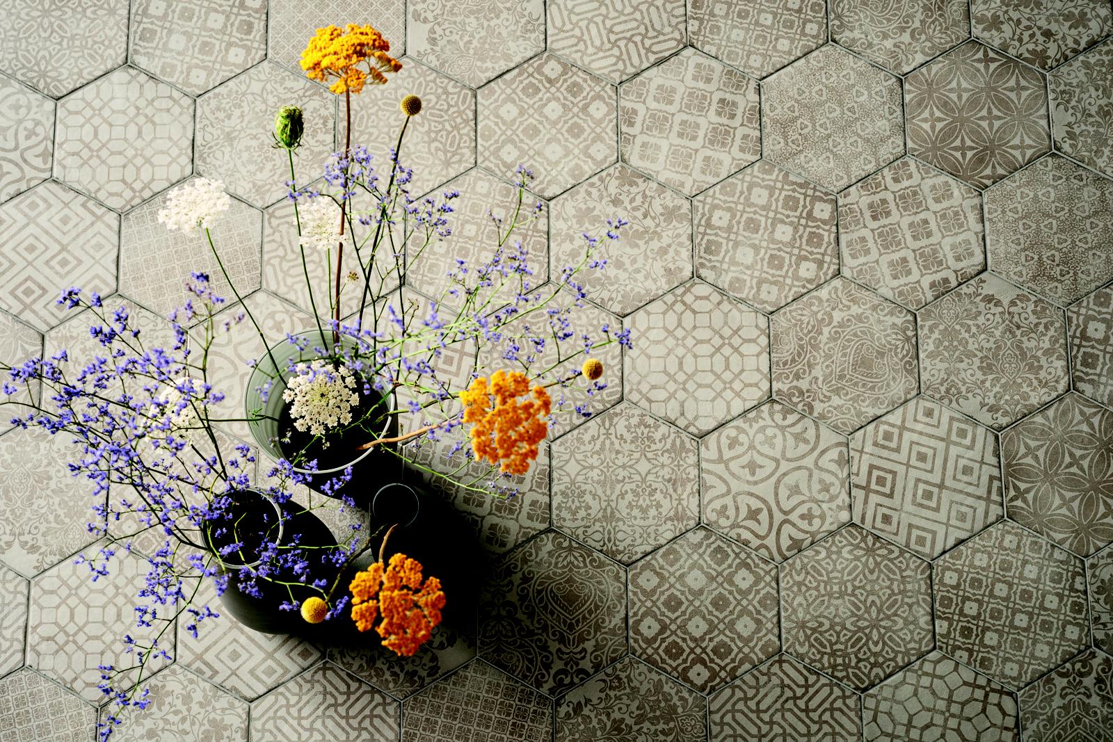 Płytki cementowe i sześciokątne reprezentują prawdziwy dialog między przeszłością, teraźniejszością i przyszłością, który nigdy nie traci na aktualności.