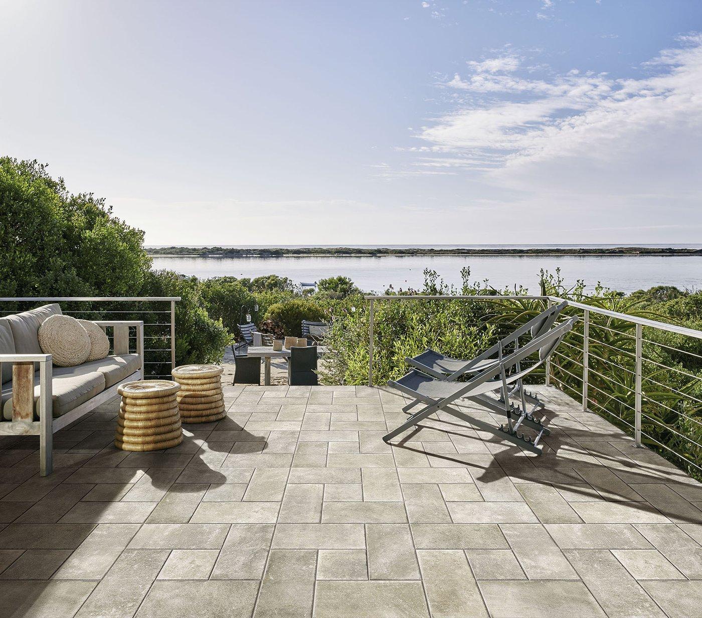 Marazzi proponuje różne rozwiązania w zakresie zewnętrznych posadzek tarasowych o efekcie kamienia: między innymi Memo, kolekcję przeznaczoną w całości do zastosowań zewnętrznych, oraz Mystone Ceppo di Gré20, dostępną również w wersji do układania wewnątrz pomieszczeń.