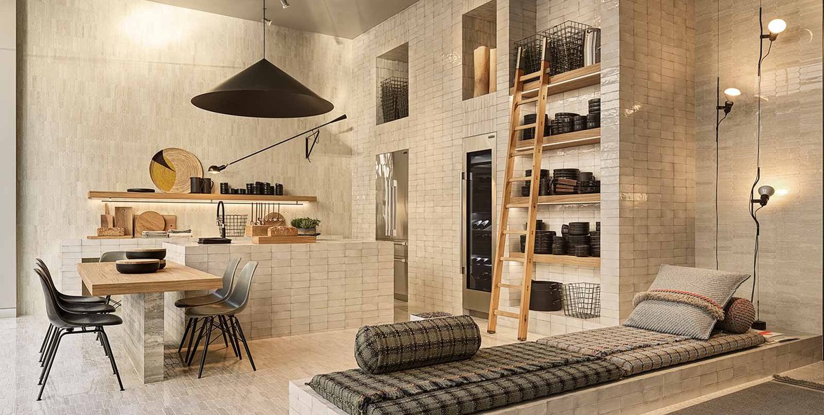 Pracownia Antonio Citterio Patricia Viel stworzyła instalację salonu Marazzi na Milano Design Week. Środowisko domowe, przytulne i zachęcające do wspólnego spędzania czasu, w którym przestrzeń kuchni stanowi – dzięki wykorzystaniu materiałów ceramicznych – jedność z salonem. Przestrzeń, w której celebruje się nie kuchnię, ale gotowanie, nie salon, ale przebywanie razem.