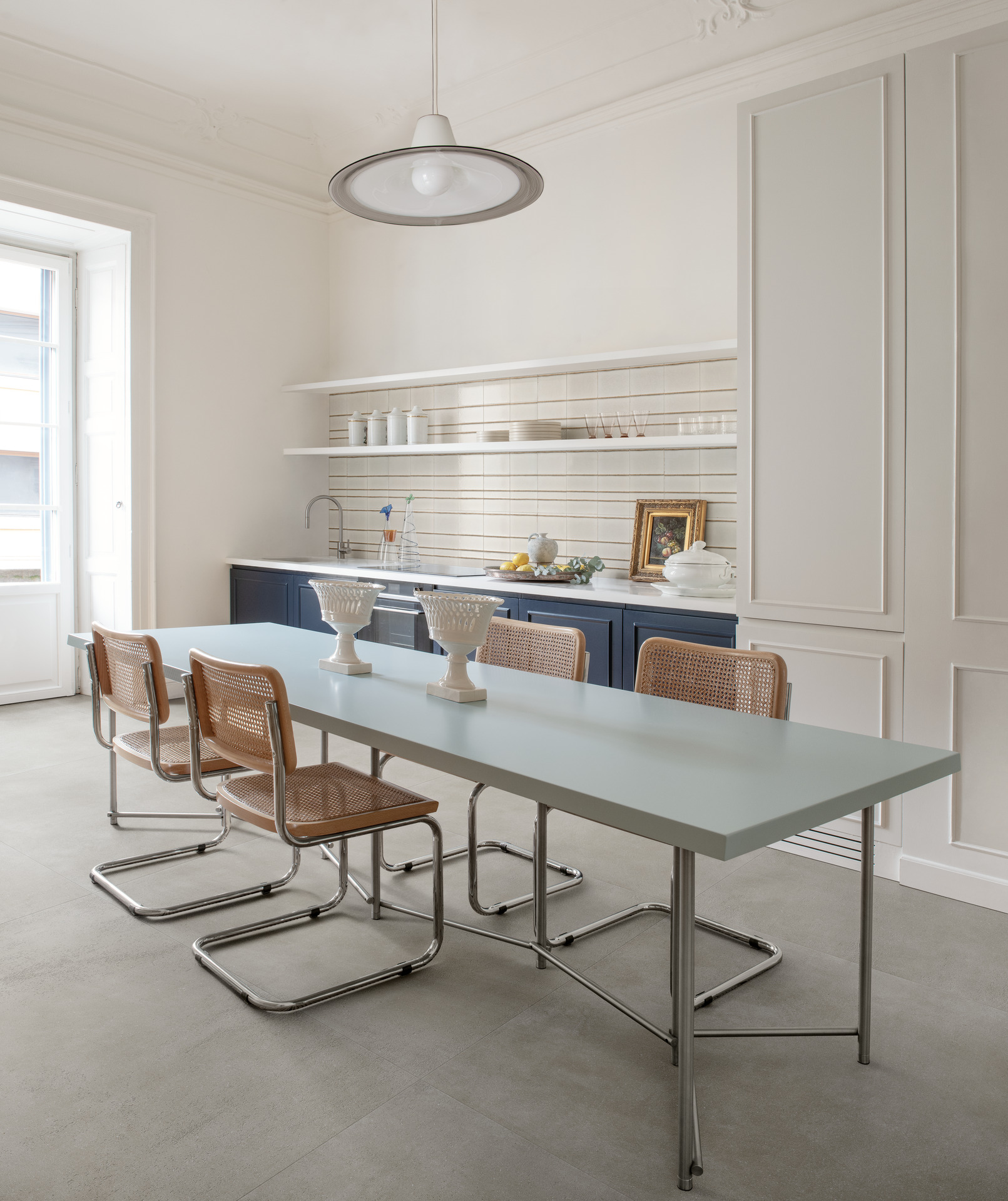 Wielką zaletą gresu porcelanowego jest także jego zdolność do interpretowania naturalnych materiałów bez kompromisów: może odtwarzać ciepły efekt drewna, elegancką teksturę kamienia naturalnego lub wyrafinowany wygląd marmuru, oferując wszystkie zalety techniczne ceramiki. Dlatego, w współczesnych rozwiązaniach do kuchni i salonu open space, gres jest często wykorzystywany zarówno jako ciągła podłoga, jak i skoordynowana okładzina ścienna.