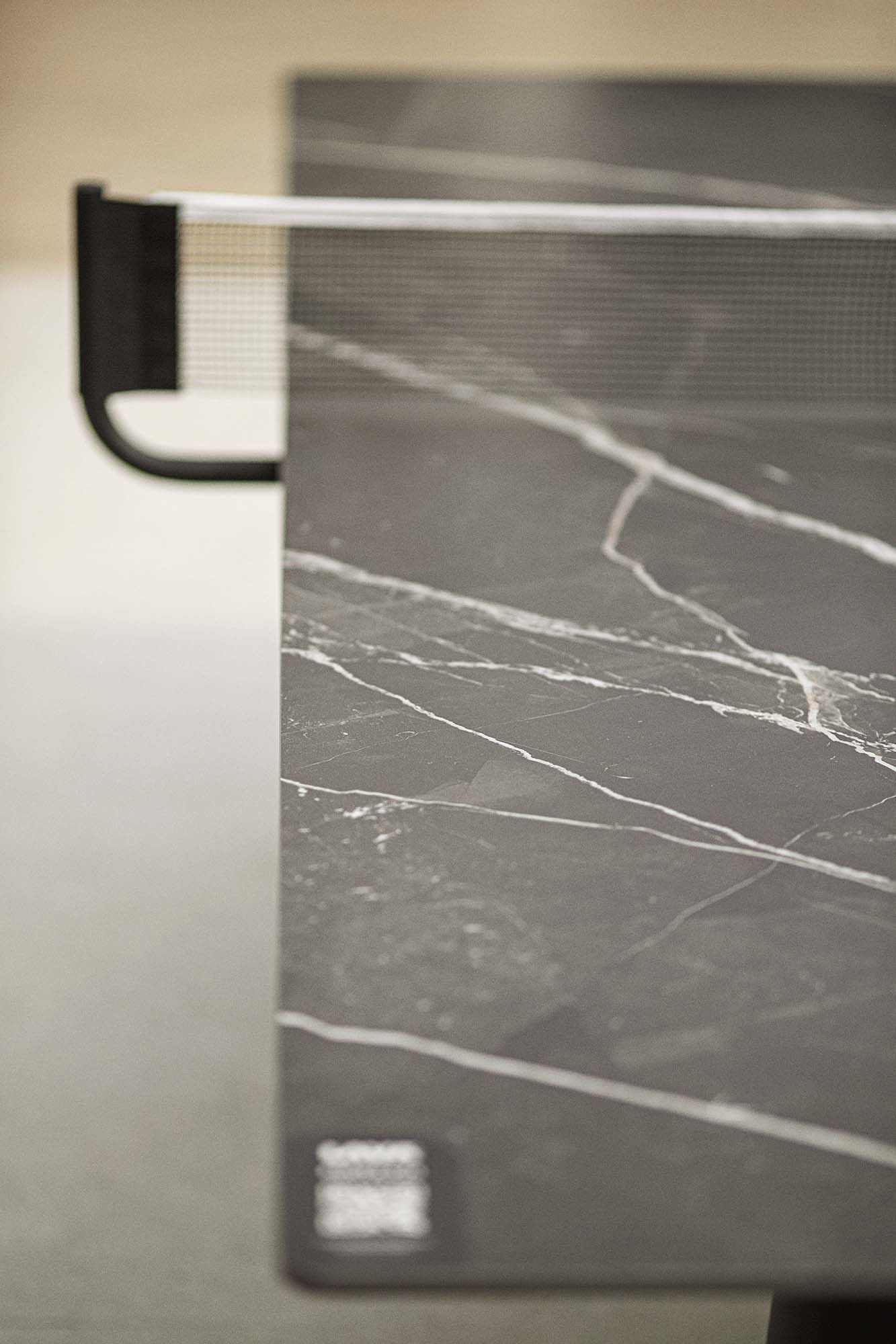 W modelu Partitina 0-6 charakterystyczne są wykrzywione aluminiowe nogi o średnicy aż 12 centymetrów, których kształt nawiązuje do trajektorii piłki odbijającej się po powierzchni podczas gry: do tego hipnotycznego ruchu z jednej strony stołu na drugą. Z masywną niczym rzeźba podstawą w kolorze czerwonym lub czarnym kontrastuje surowy i elegancki blat z gresu porcelanowego o efekcie marmuru, biały lub czarny. Takie zestawienie kolorów blatu i podstawy stwarza odmienną estetykę: od rygorystycznego i minimalistycznego stylu „total black” po nieco żywszą biel z czerwienią. Nawiązanie do gry ma tu charakter metaforyczny, a ów nieznany dotąd, wyszukany design potrafi wywołać uśmiech.