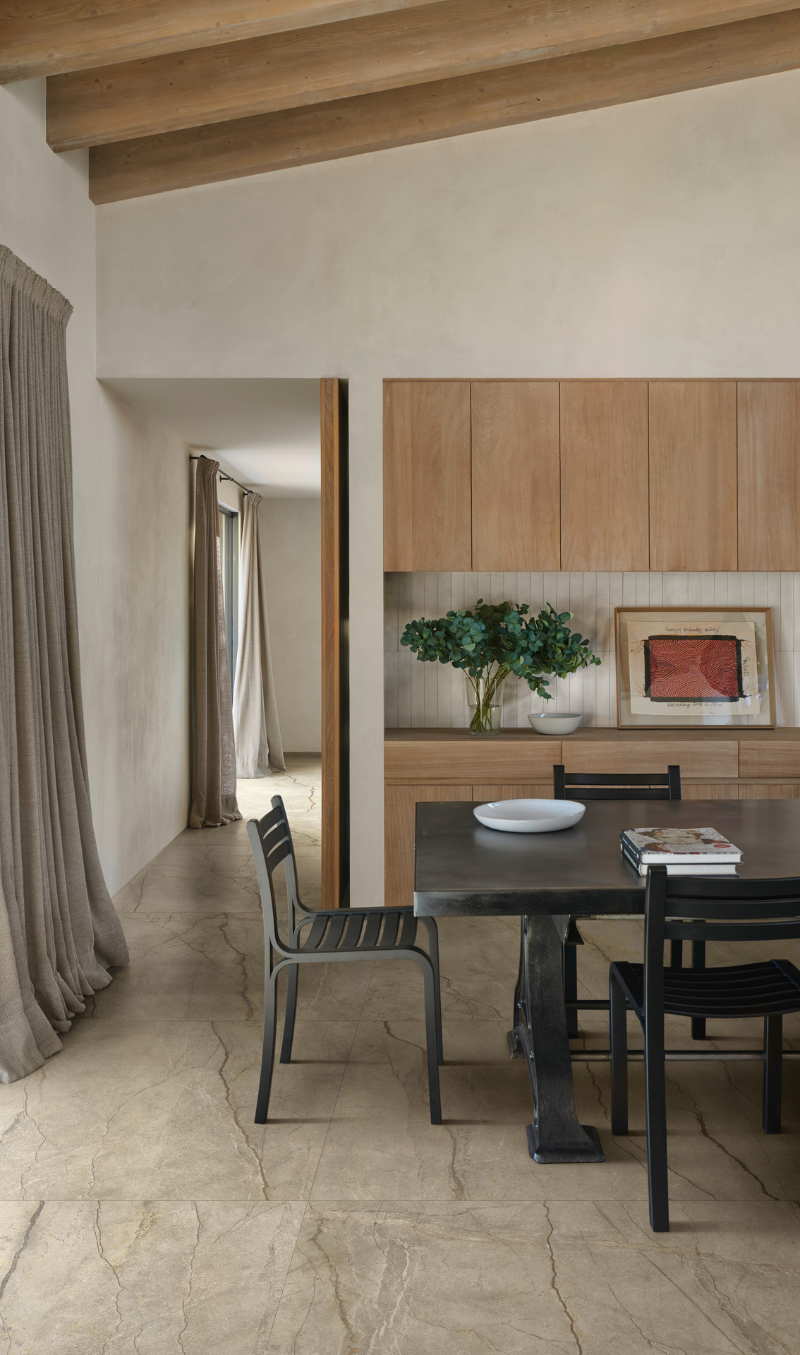 Gres porcelanowy staje się zatem idealnym narzędziem do osiągnięcia doskonałej równowagi między materiałami naturalnymi a jego wszechstronnymi zastosowaniami, także łącząc wielkoformatowe, eklektyczne płyty z dekoracyjnymi rozwiązaniami opartymi na powtarzalności małego formatu, zdolnym do fragmentacji powierzchni, nadając jej ruch i nowe połyski.