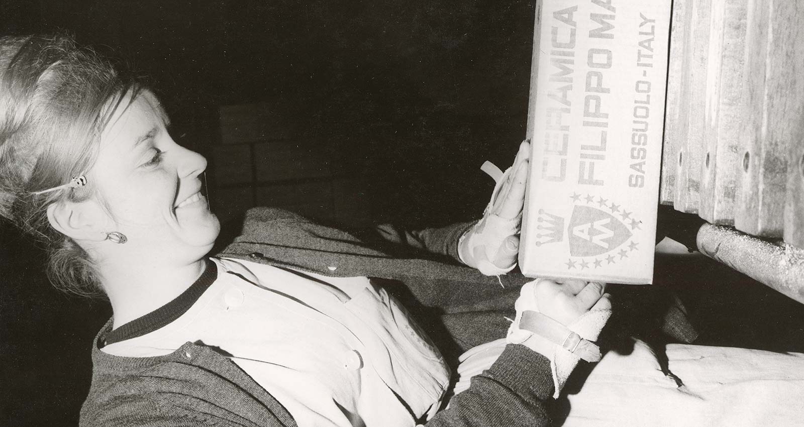 Pierwsze podłogi z wykonanym ręcznie efektem „pociągnięcia pędzla” to owoc współpracy z Venerio Martinim, malarzem i ceramikiem z Sassuolo o międzynarodowej sławie.