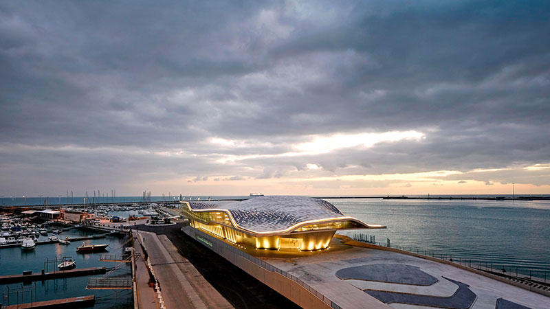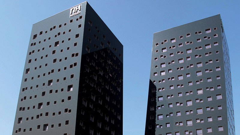 Wieże hotelowe zrealizowane przez Dominique‘a Perraulta tworzą niesamowicie abstrakcyjne wrażenie dzięki lustrzanej elewacji firmowanej przez Marazzi.