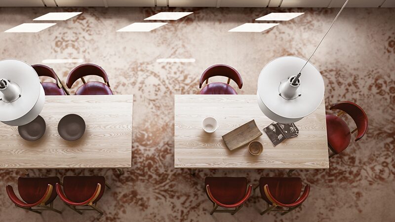 Legendarne płytki „z czterema zaokrąglonymi bokami” Triennale, zaprojektowane przez Gio Pontiego i Alberto Rosselliego dla Marazzi, pokrywają 5 kuchni na 5 piętrach restauracji Cracco w Galerii Vittorio Emanuele w Mediolanie.