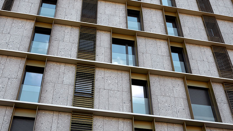 Do elewacji wentylowanych pierwszych rezydencji w dzielnicy UpTown w Mediolanie wybrano nowe płyty z gresu porcelanowego Mystone Ceppo di Gré.
