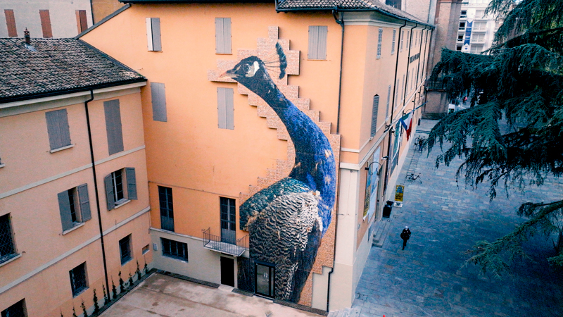 Stałe dzieło sztuki publicznej zaprojektowane przez katalońskiego artystę na zewnętrzną fasadę Palazzo dei Musei w Reggio Emilia zostało stworzone z trzydziestu płyt ceramicznych wyprodukowanych w zakładach Marazzi i zamontowanych na wentylowanej fasadzie zaprojektowanej i zbudowanej przez Marazzi Engineering. Paw jest przedstawiony w wysokiej rozdzielczości cyfrowej na dużych cienkich płytach, tworząc obraz o wymiarach 16 x 6 metrów.