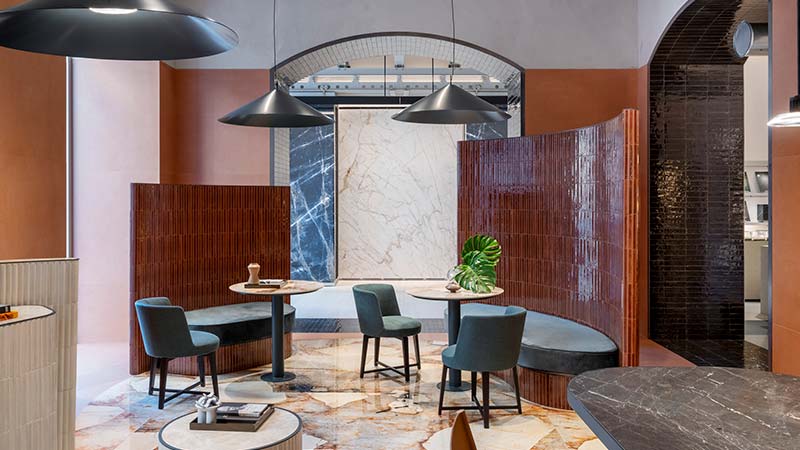 Grand Carpet i kolekcja Grande w formacie extra large zdobią przestrzeń zaprojektowaną przez Matteo Cibica i Studio Blanco The Tile Club, tj. gentlemen’s club leżący w sercu deptaku San Babila. Ten projekt, zrealizowany z okazji ekspozycji Salone del Mobile, to gratka dla pasjonatów ceramiki.