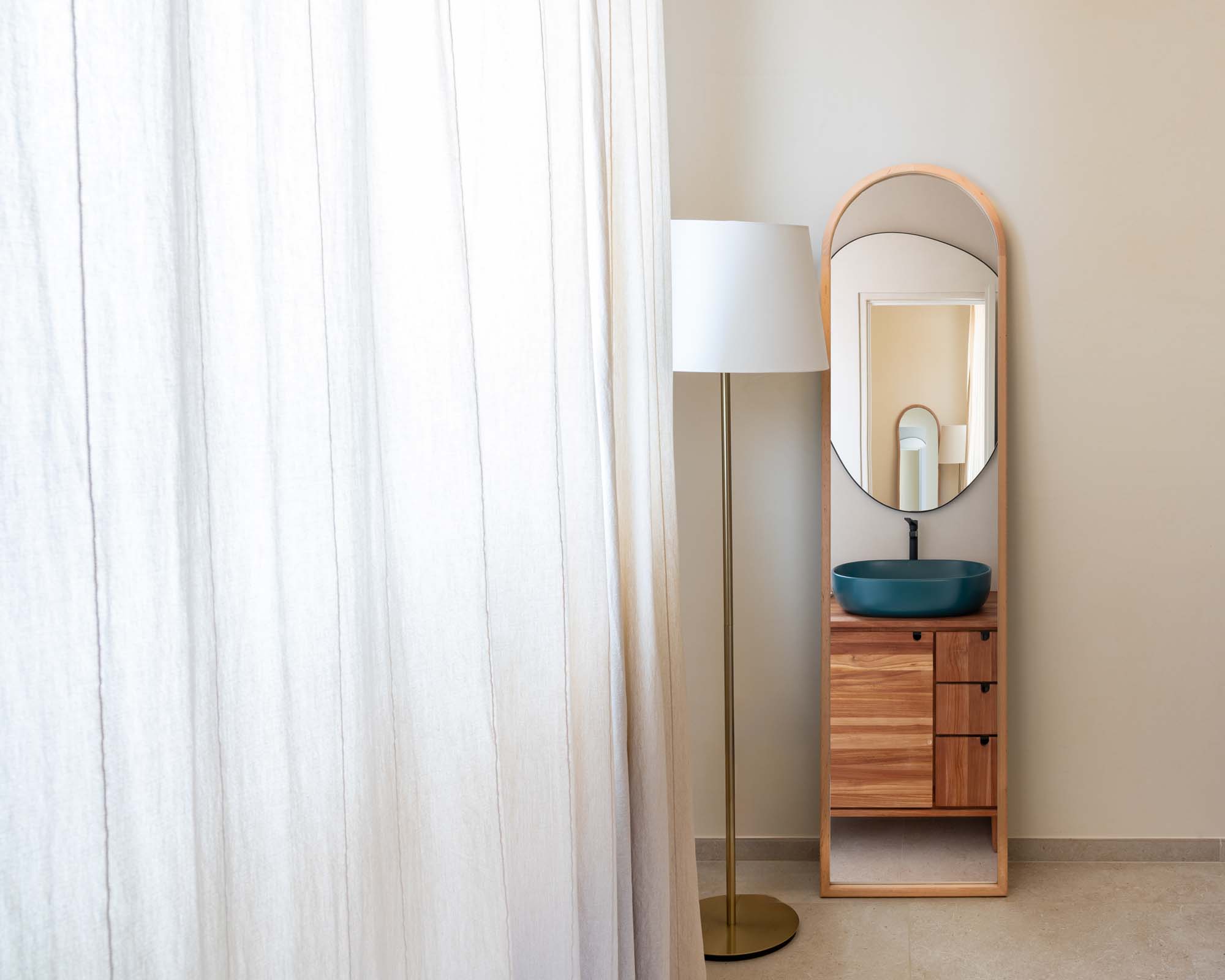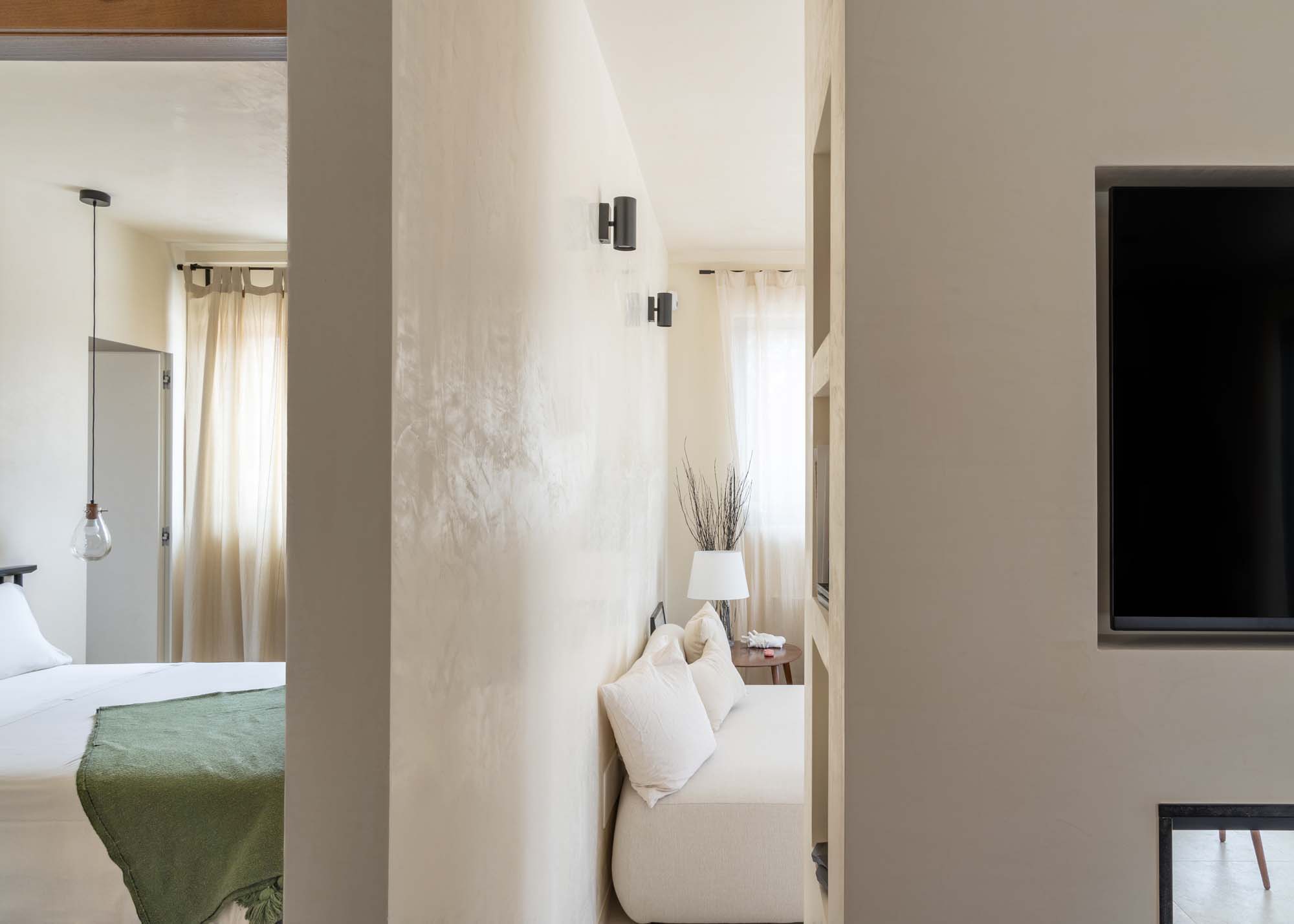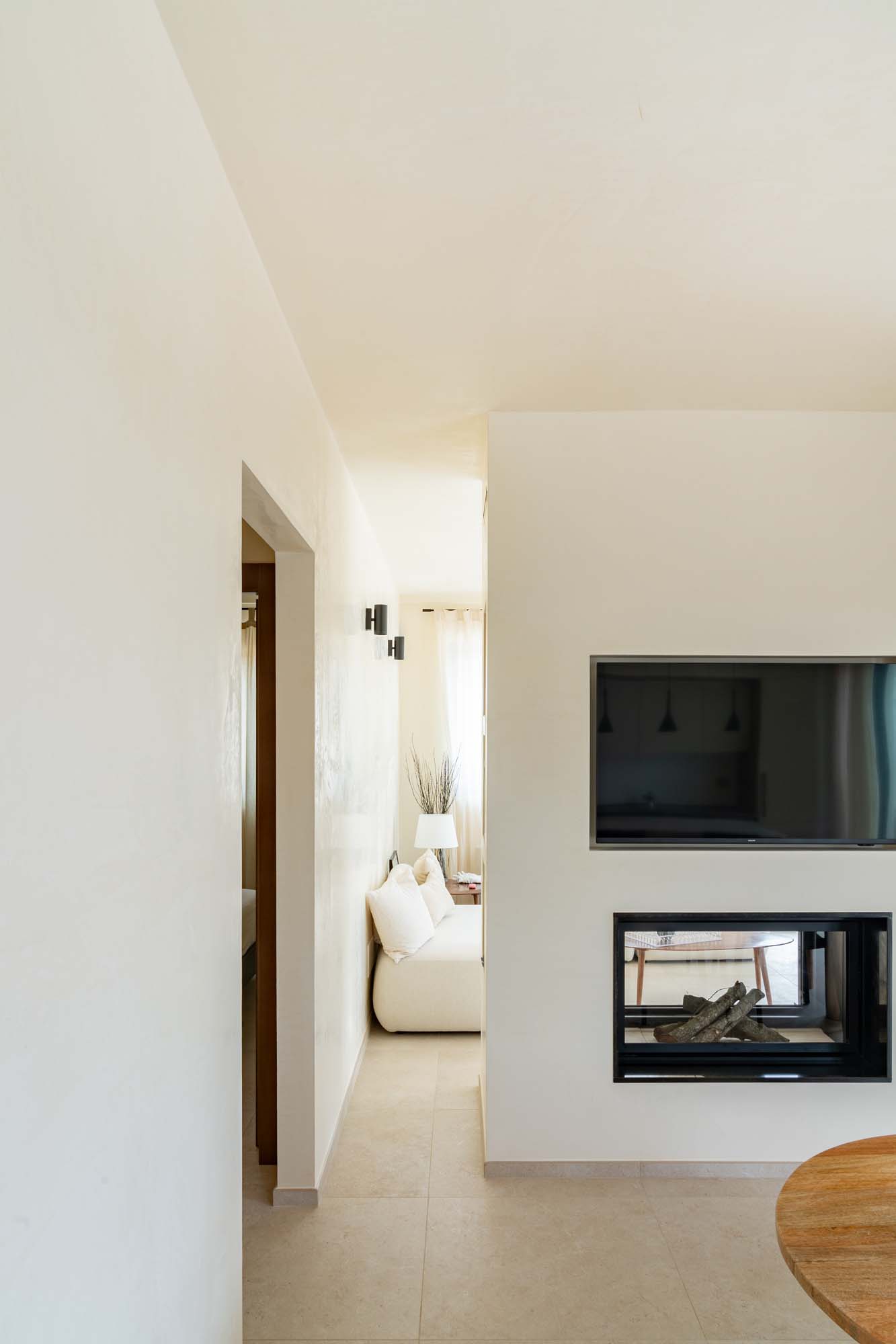 Kluczowe znaczenie dla powodzenia tego projektu miał dobór materiałów. Mara Prezioso postawiła na ceramikę marki Marazzi, a konkretnie na gres porcelanowy o efekcie kamienia Mystone Limestone w jasnym kolorze Ivory, który położono na podłogach całego domu. Wybrano ten właśnie produkt, bowiem potrafi on podkreślać kontrast między rustykalnym charakterem „trulli” a nowoczesnym wnętrzem. Kolekcja Mystone Limestone, dzięki swym ciepłym i naturalnym odcieniom, doskonale komponuje się ze ścianami z kamienia i z elementami z drewna, tworząc przytulne wnętrza o wyrafinowanym charakterze.