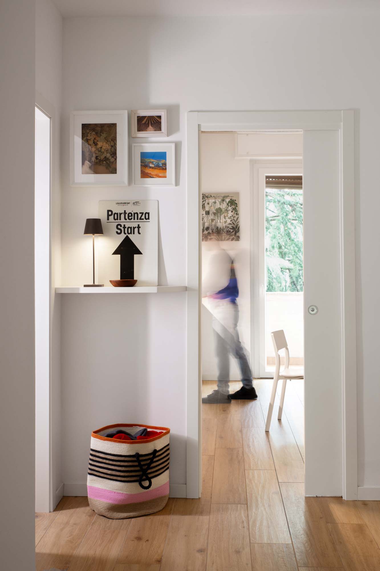 „Usługa pod klucz, którą studio zrealizowało również dla tego miejskiego apartamentu” – potwierdziła architekt Bianchi – „Studio przeprowadziło remont, który zoptymalizował przestrzeń, zachowując jej pierwotną szerokość oraz dostosowując długość pomieszczeń, by poprawić ich funkcjonalność, umożliwiając także rozmieszczenie przestronnych mebli w każdym wnętrzu.”