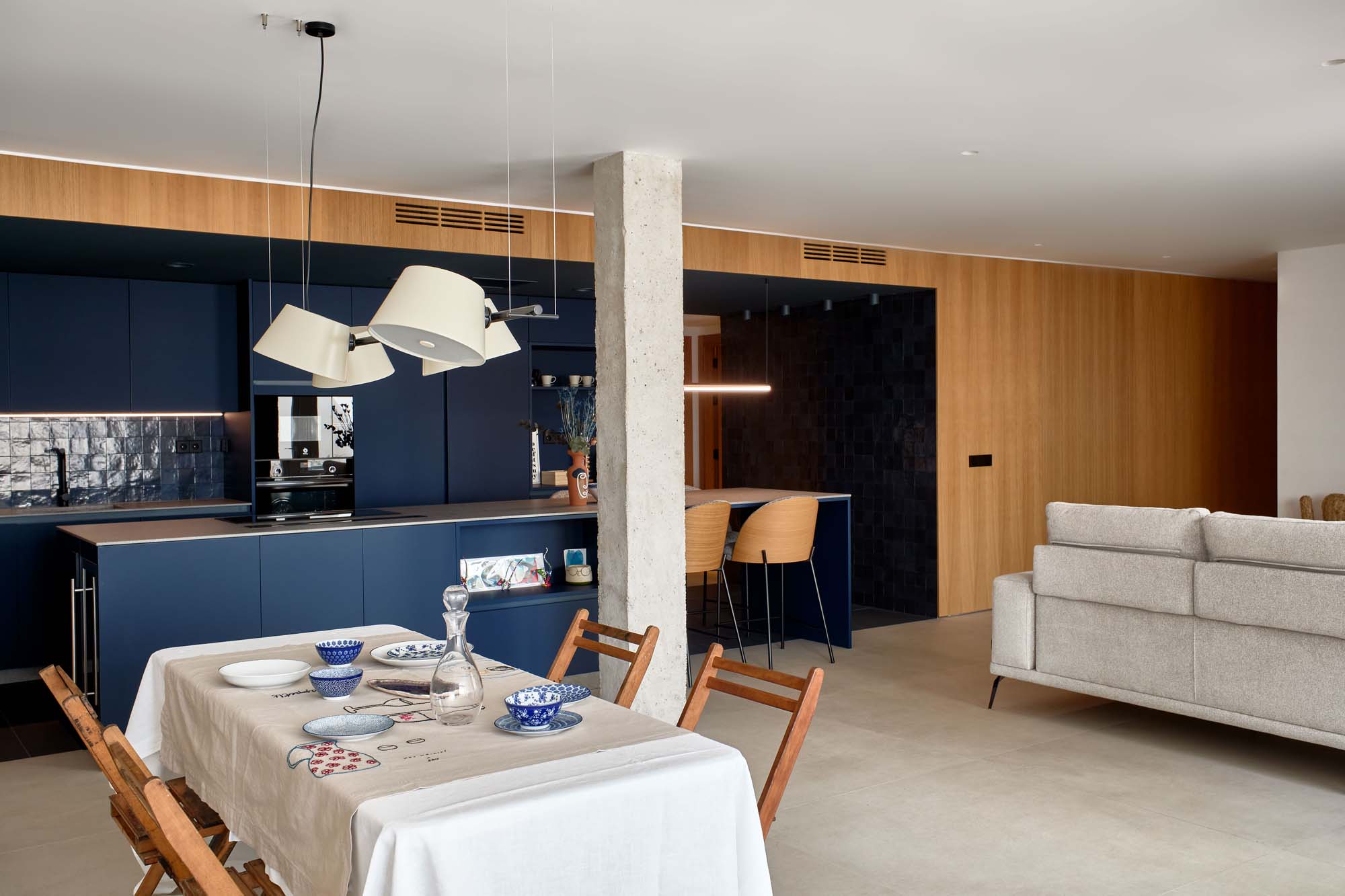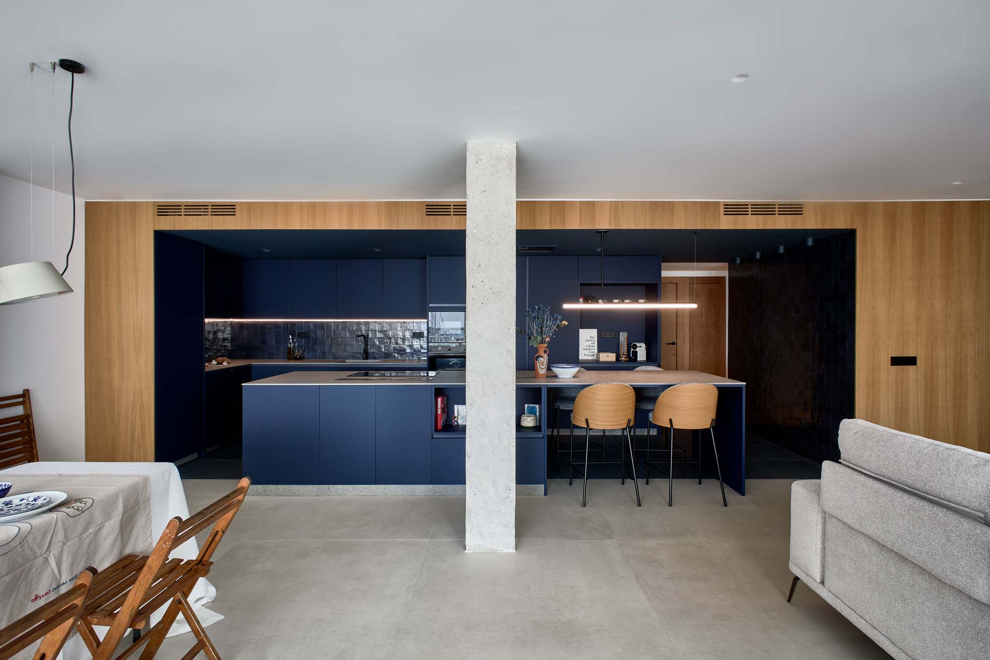 Rezydencja w sercu portu Almerimar przedstawiała się jako rozfragmentowane mieszkanie, słabo powiązane z przestrzenią zewnętrzną. Interwencja JAO Arquitectura przywróciła nowy wymiar otwartości i płynności, ustanawiając stały dialog z morskim krajobrazem. Na powierzchni 178 m² reorganizacja opiera się na tzw. „veta”: centralnym pasie, który nie tylko strukturyzuje układ pomieszczeń, ale także mieści kluczowe funkcje, takie jak kuchnia i łazienki, stając się tożsamościową osią domu. Na północ i południe od tej linii zlokalizowano dwie makrostrefy: przestrzeń dzienną, otwartą i wielofunkcyjną, skierowaną ku widokom na port, oraz bardziej kameralną, prywatną strefę nocną, zaprojektowaną z użyciem materiałów nadających wizualną ciągłość. Naturalne światło, wzmocnione projektem oświetlenia opracowanym wspólnie z Grupo Seac, potęguje percepcję przestrzeni, podczas gdy dobór kolorów i wykończeń podkreśla jednolity i wyrafinowany charakter renowacji.