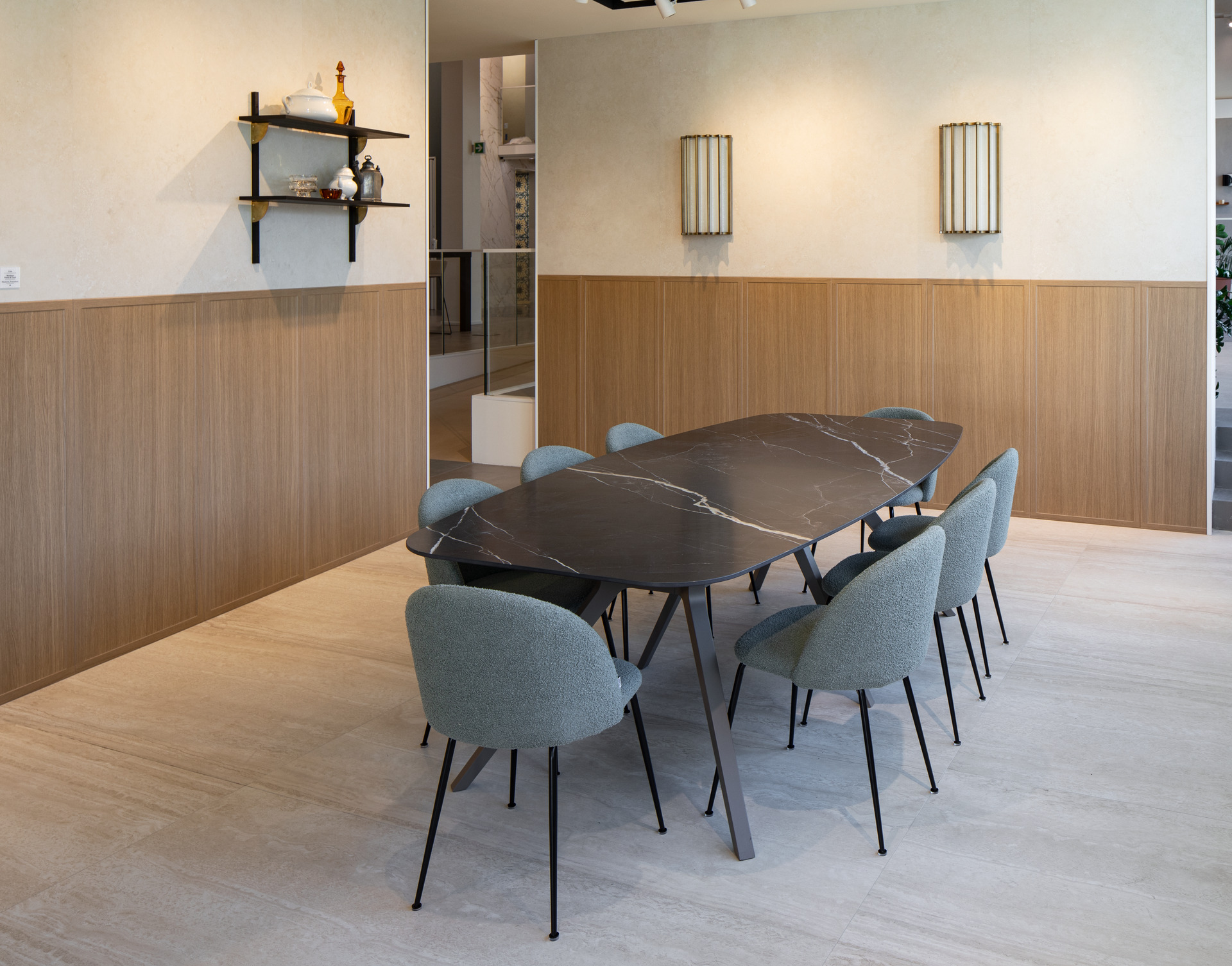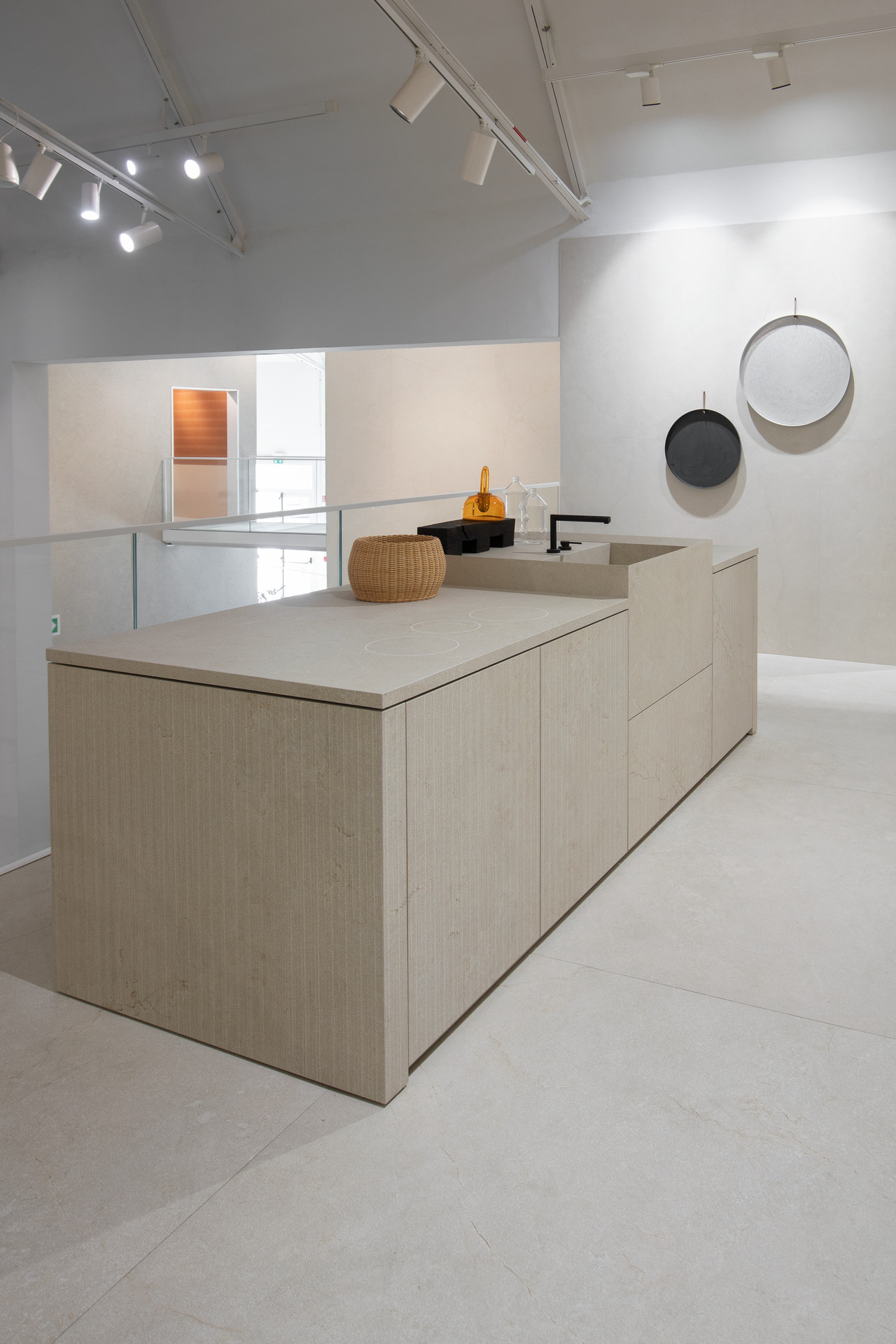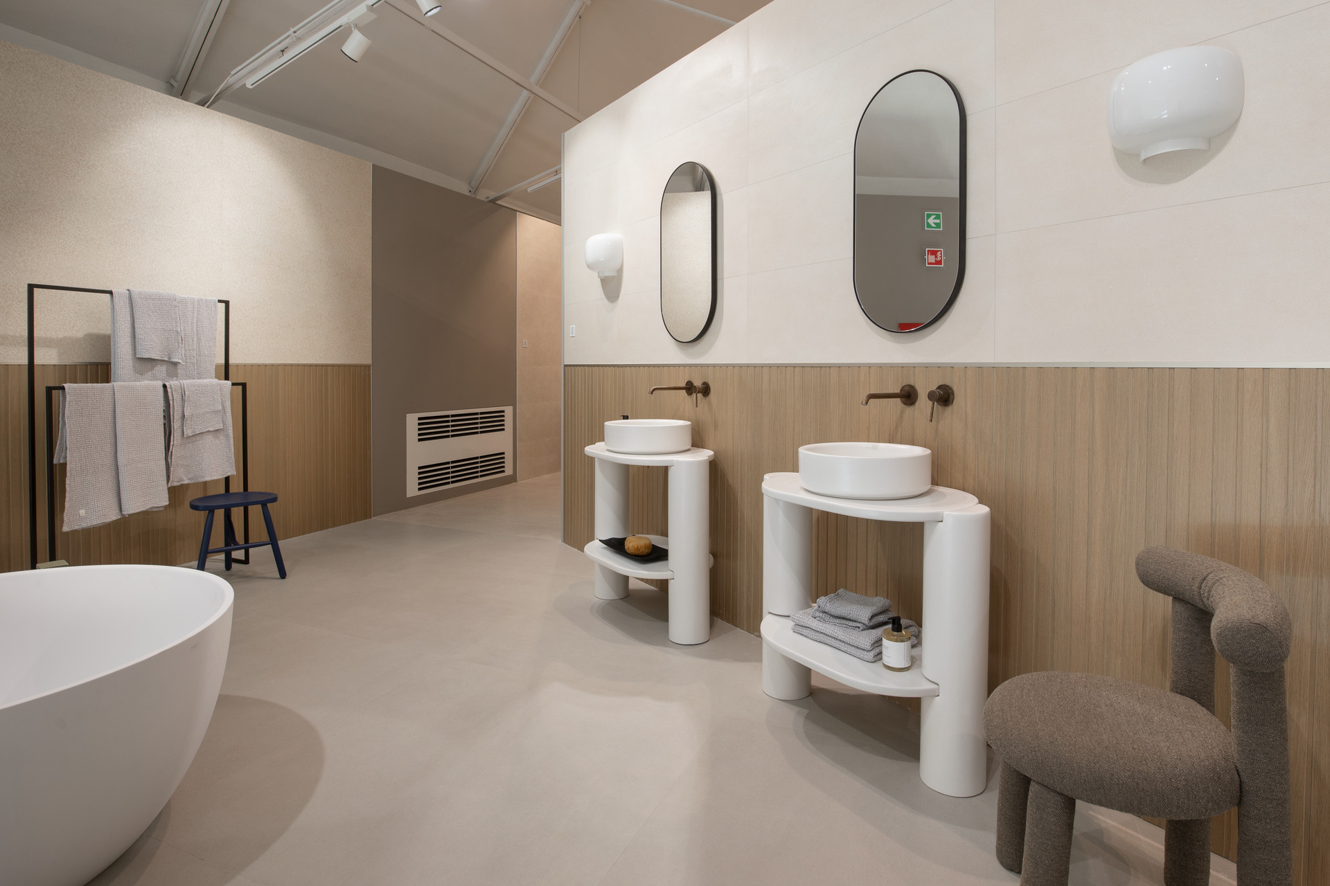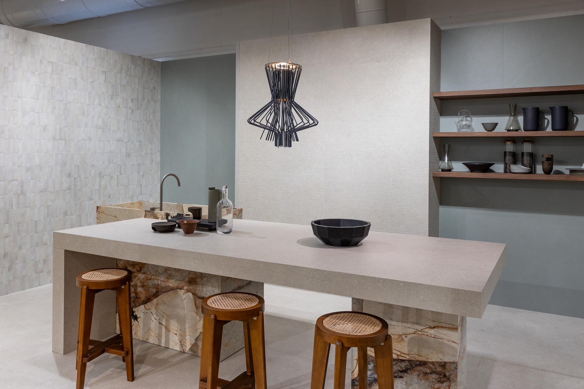 Marazzi wystawia swoje najnowsze kolekcje z ceramiki i gresu we własnym salonie w Sassuolo, który mieści się we wnętrzach historycznej siedziby firmy. Dostępny jest w nim szeroki asortyment produktów wykonanych z gresu porcelanowego, w technologii pojedynczego wypalania, a także mozaiki w różnych formatach – od najmniejszych i tradycyjnych po duże płyty – kolorach, grubościach i rodzajach powierzchni, zarówno dla domu, jak i dla sektora kontraktowego, włącznie z lekkimi i delikatnymi okładzinami oraz powłokami i podłogami z gresu technicznego o dużej grubości do stref zewnętrznych. W salonie znalazły się również płyty z gresu Marazzi przeznaczone na blaty kuchenne, panele kuchenne, stoły, skrzydła drzwiowe i rozwiązania wystroju wnętrz dostosowane do przestrzeni mieszkalnych oraz komercyjnych.