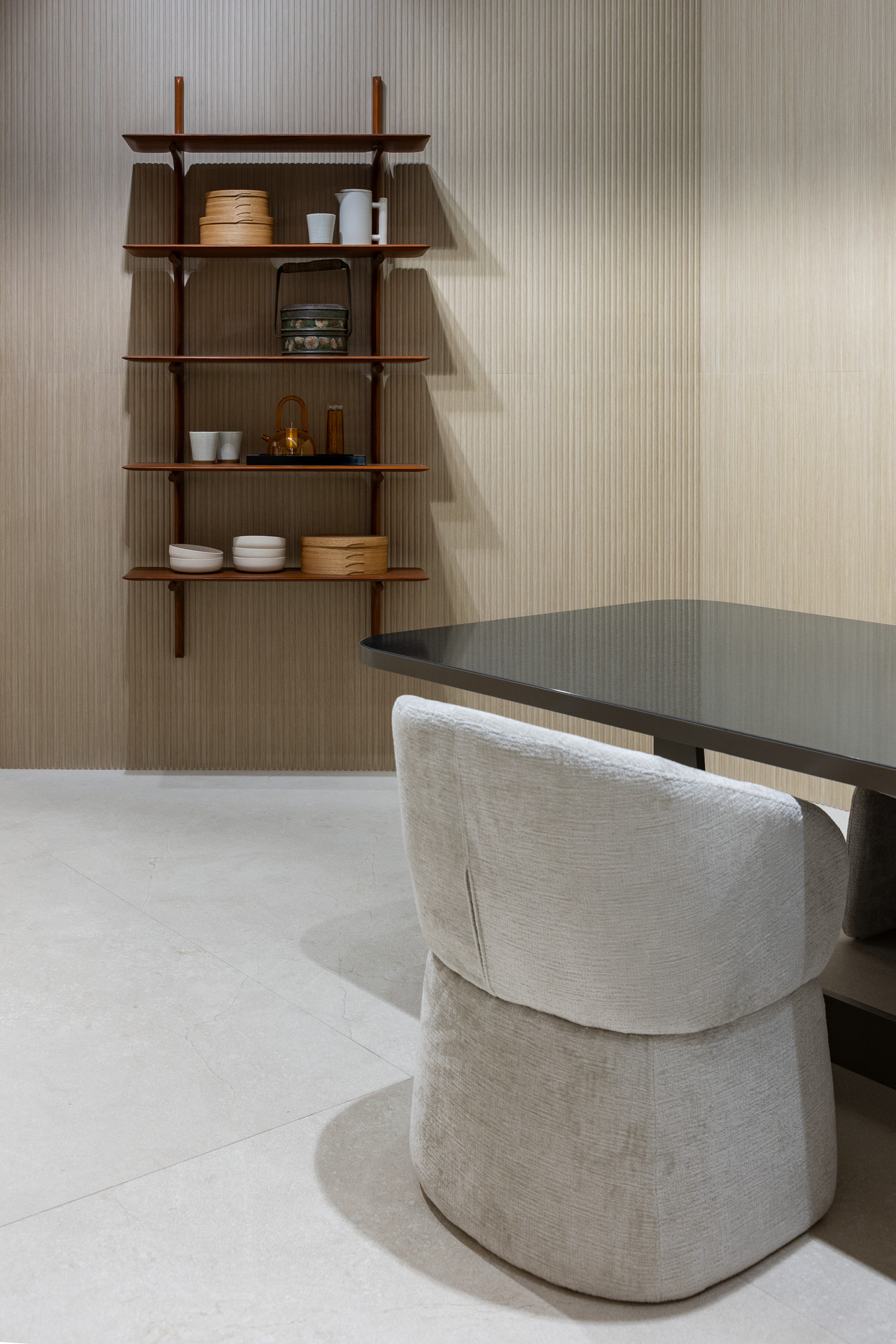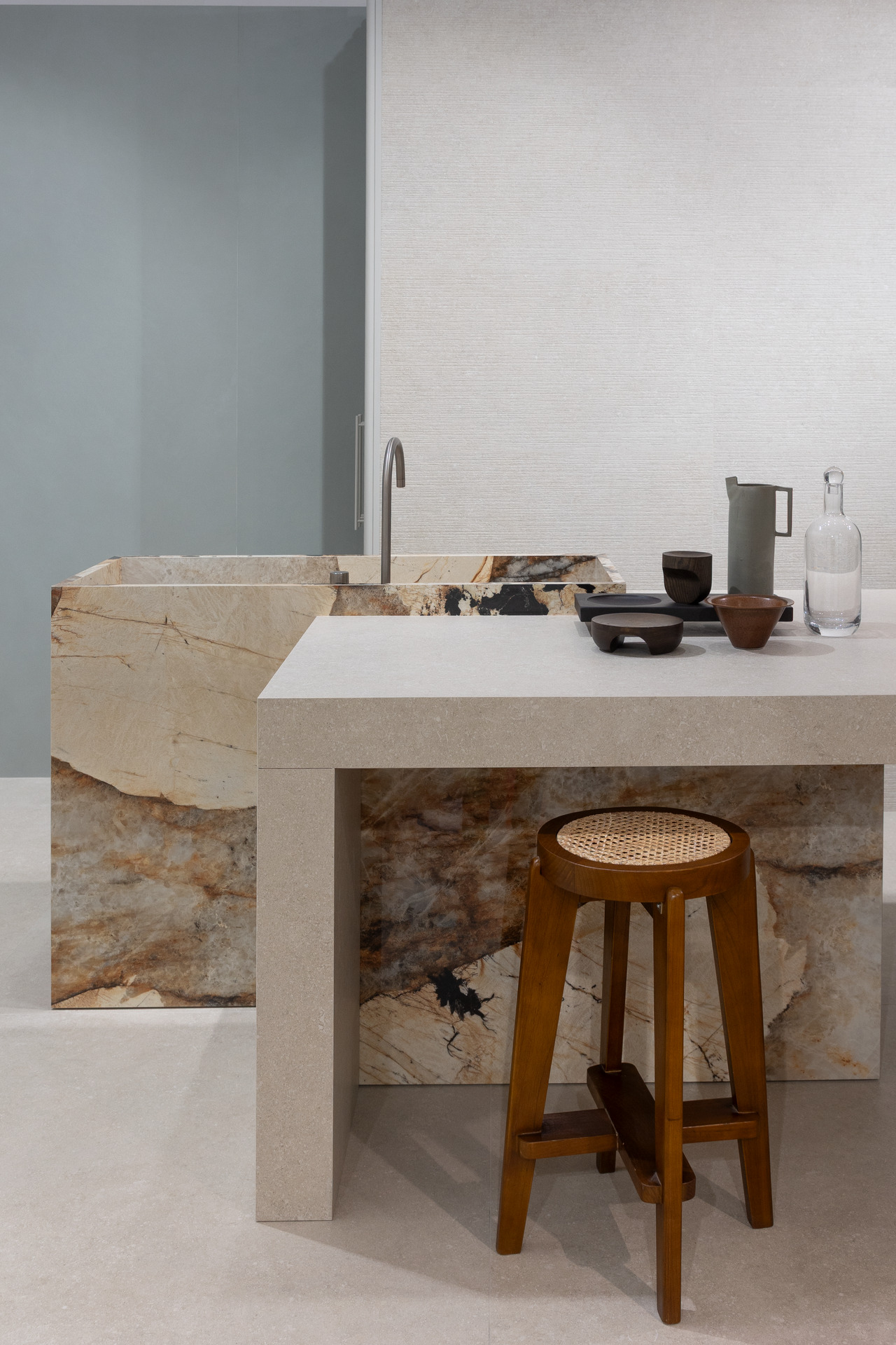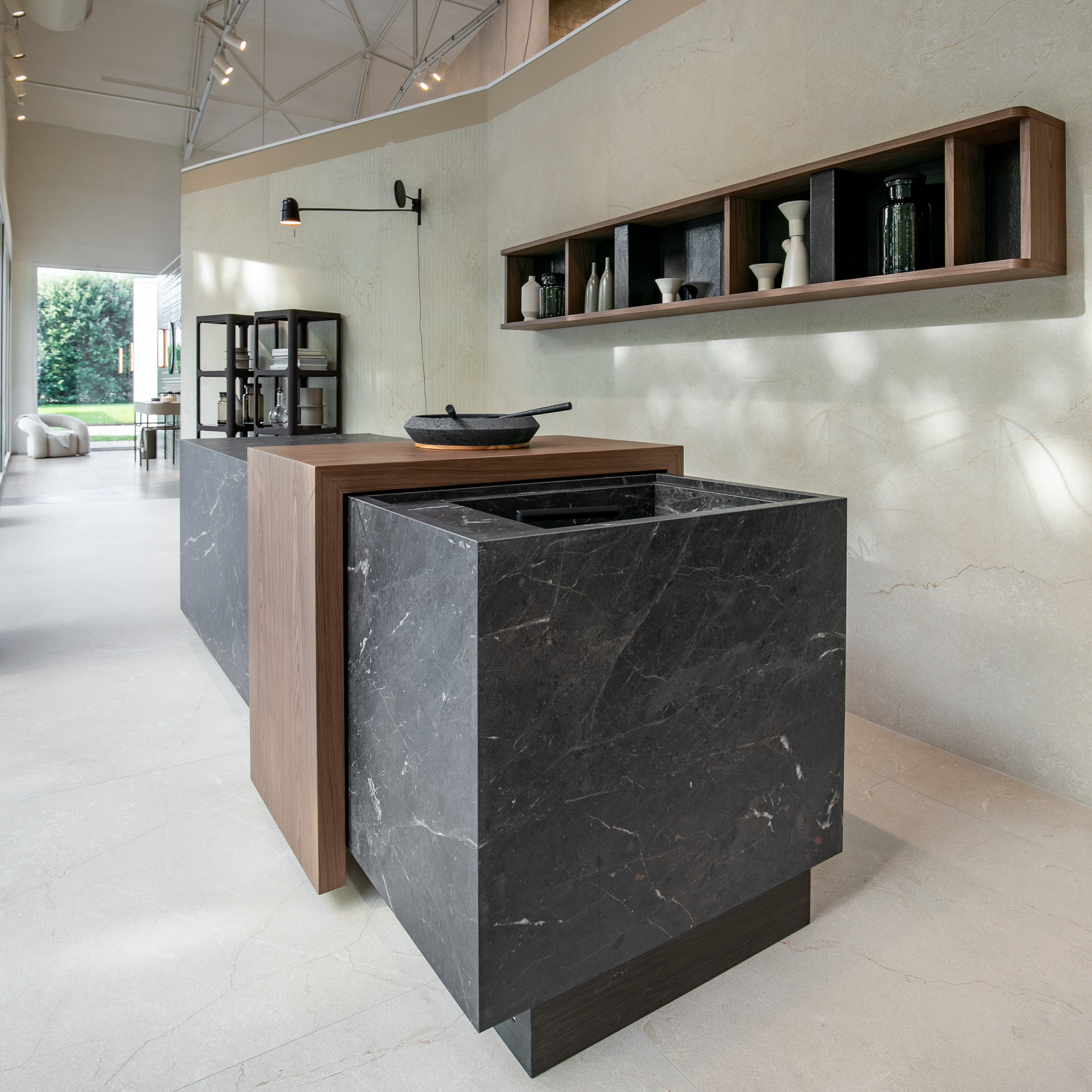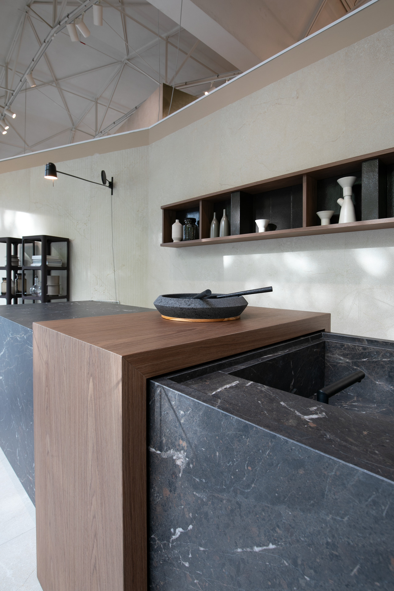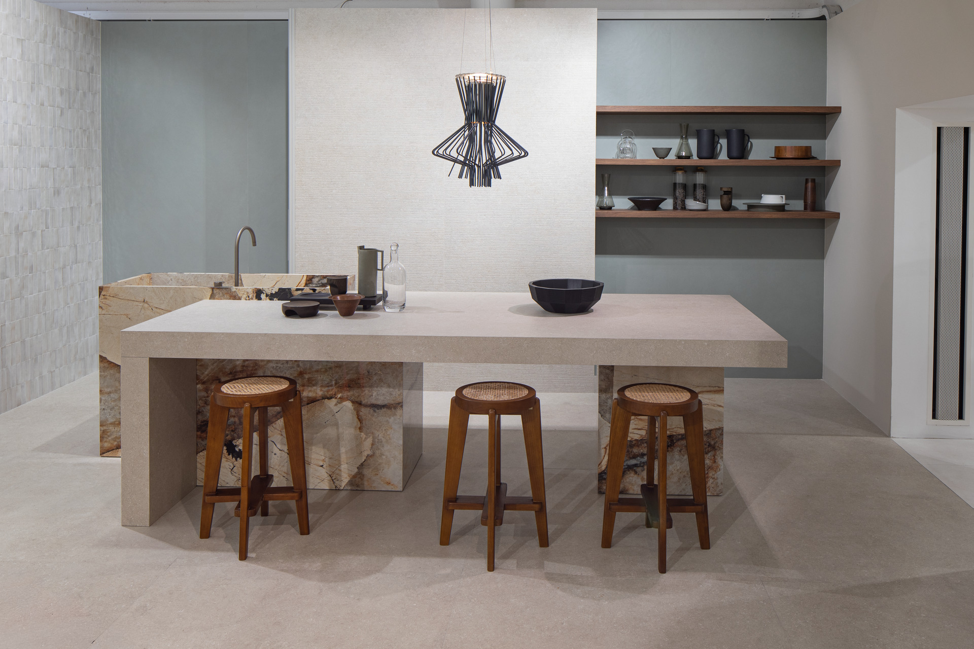 Marazzi wystawia swoje najnowsze kolekcje z ceramiki i gresu we własnym salonie w Sassuolo, który mieści się we wnętrzach historycznej siedziby firmy. Dostępny jest w nim szeroki asortyment produktów wykonanych z gresu porcelanowego, w technologii pojedynczego wypalania, a także mozaiki w różnych formatach – od najmniejszych i tradycyjnych po duże płyty – kolorach, grubościach i rodzajach powierzchni, zarówno dla domu, jak i dla sektora kontraktowego, włącznie z lekkimi i delikatnymi okładzinami oraz powłokami i podłogami z gresu technicznego o dużej grubości do stref zewnętrznych. W salonie znalazły się również płyty z gresu Marazzi przeznaczone na blaty kuchenne, panele kuchenne, stoły, skrzydła drzwiowe i rozwiązania wystroju wnętrz dostosowane do przestrzeni mieszkalnych oraz komercyjnych.