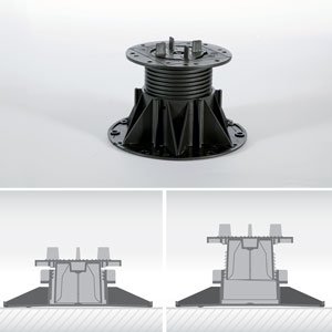 Układanie podłogi podniesionej oznacza realizację całego systemu, w którego skład wchodzą: płyta 20 mm + wsporniki polipropylenowe + ewentualne elementy uzupełniające (siatka lub blacha ocynkowana). System podłogi podniesionej do zastosowań zewnętrznych jest bardzo elastyczny i może być układany na posadzkach każdego typu, na pojedynczej lub podwójnej impregnacji oraz na asfalcie.